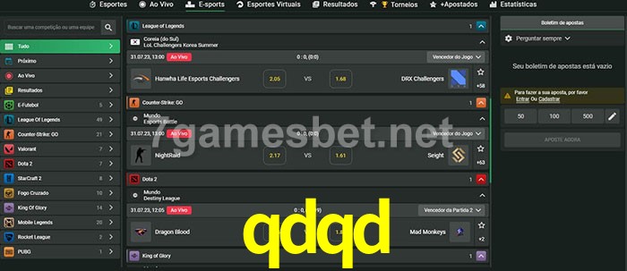 O qdqd oferece uma grande seleção de opções de apostas em e-sports com probabilidades competitivas